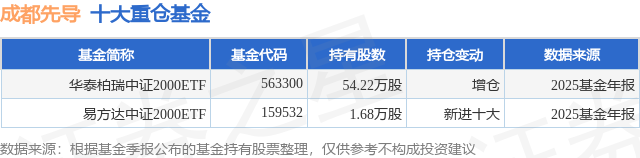 根据2025基金年报公募基金重仓股数据,重仓该股的公募基金共2家,其中持有数量最多的公募基金为华泰柏瑞基金的华泰柏瑞中证2000ETF。华泰柏瑞中证2000ETF目前规模为26.75亿元,最新净值1.4307(3月20日),较上一交易日下跌2.21%,近一年上涨23.63%。该公募基金现任基金经理为柳军 李沐阳。柳军在任的基金产品包括:华泰柏瑞上证红利ETF,管理时间为2009年6月4日至今,期间收益率为160.75%;华泰柏瑞沪深300ETF,管理时间为2012年5月4日至今,期间收益率为113.38%;华泰柏瑞沪深300ETF联接A,管理时间为2012年5月29日至今,期间收益率为130.43%;华泰柏瑞MSCI中国A股国际通ETF,管理时间为2018年4月26日至今,期间收益率为81.58%。李沐阳在任的基金产品包括:华泰柏瑞中证光伏产业ETF,管理时间为2021年1月6日至今,期间收益率为-5.16%;华泰柏瑞光伏ETF联接A,管理时间为2021年8月17日至今,期间收益率为-30.64%;华泰柏瑞中证韩交所中韩半导体ETF(QDII),管理时间为2022年11月2日至今,期间收益率为226.17%;华泰柏瑞纳斯达克100ETF(QDII),管理时间为2023年3月1日至今,期间收益率为92.96%。